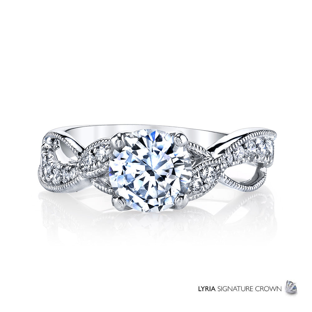 Diamond vines and leaves intertwine with delicate ribbons of gold, presenting a sparkling center stone in the Parade Lyria Signature Crown.