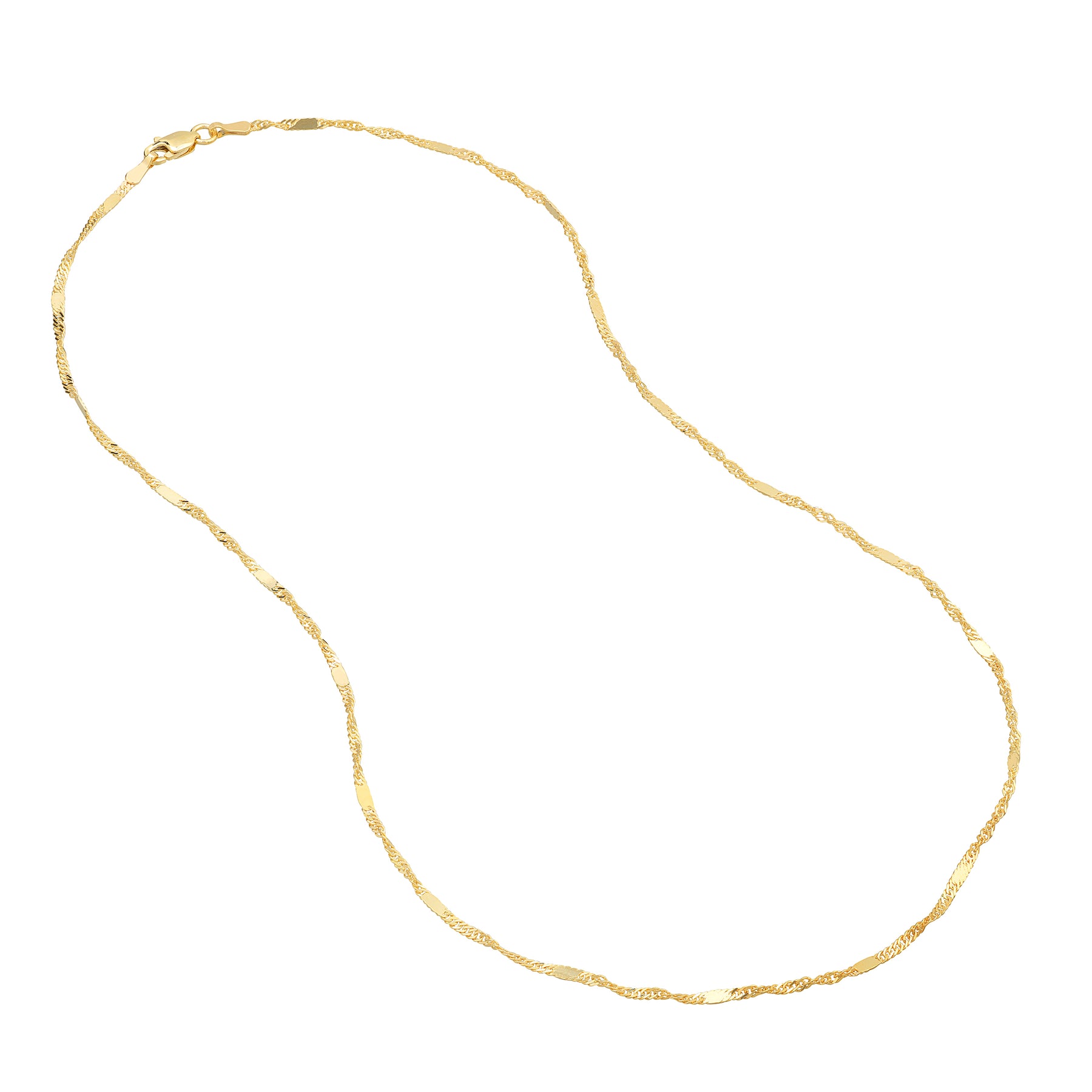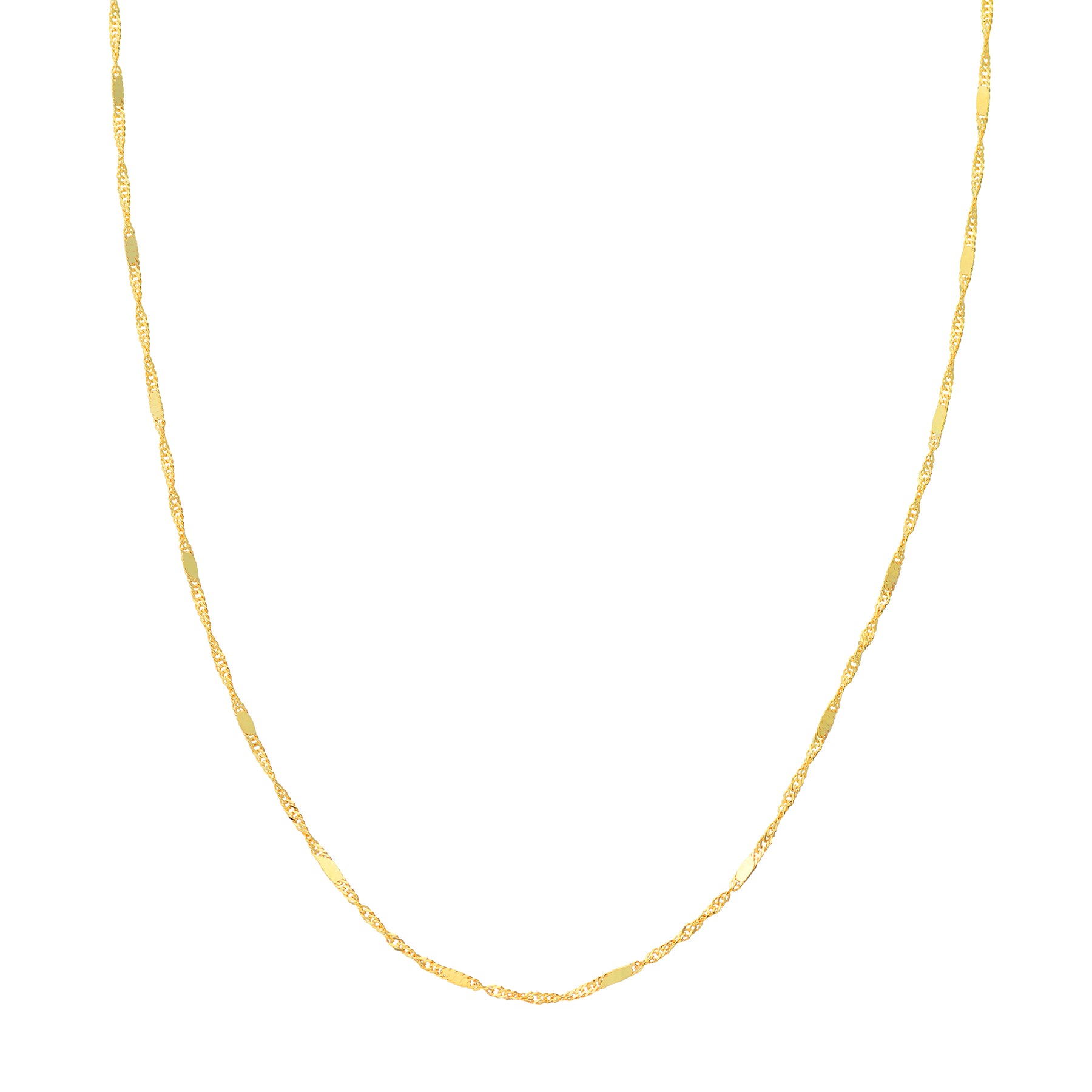 This 14K gold Singapore Saturn Chain features flattened link elements. A unique, modern chain that will become a staple in your wardrobe.