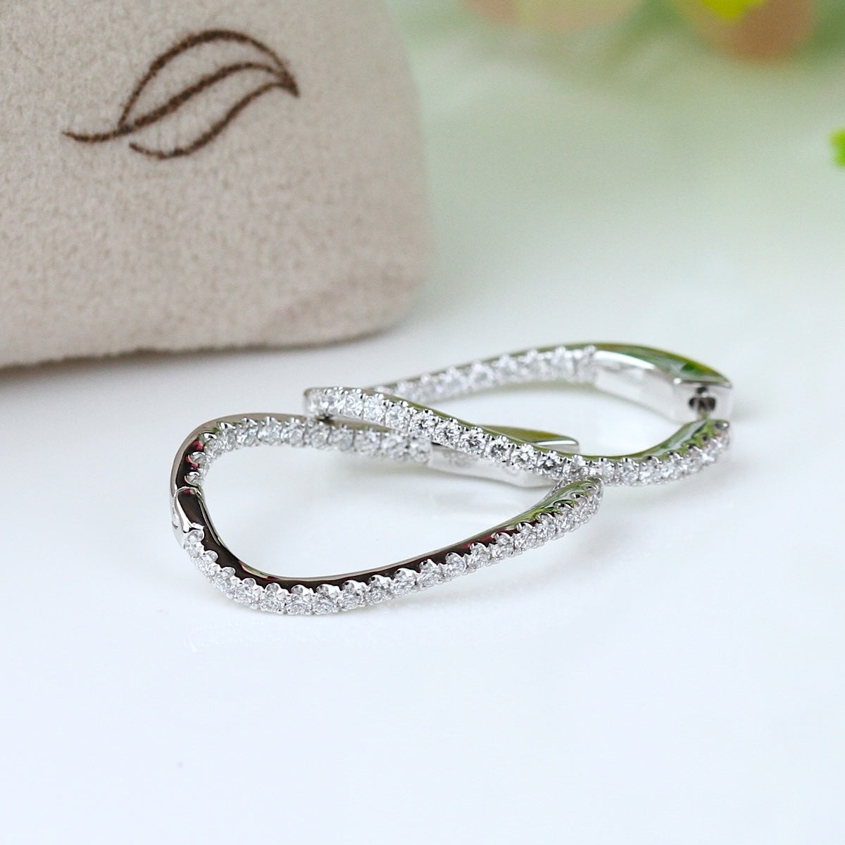 Discover a new twist with these diamond hoop earrings. A modern spin on the classic inside/out hoop earrings.