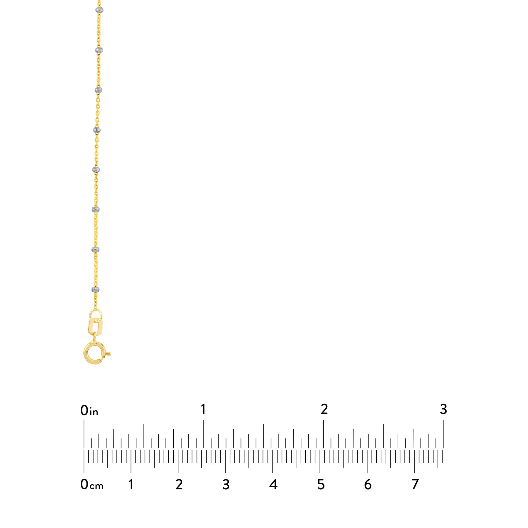 This yellow gold Saturn Chain features white gold bead elements. A unique, modern chain that will become a staple in your wardrobe.