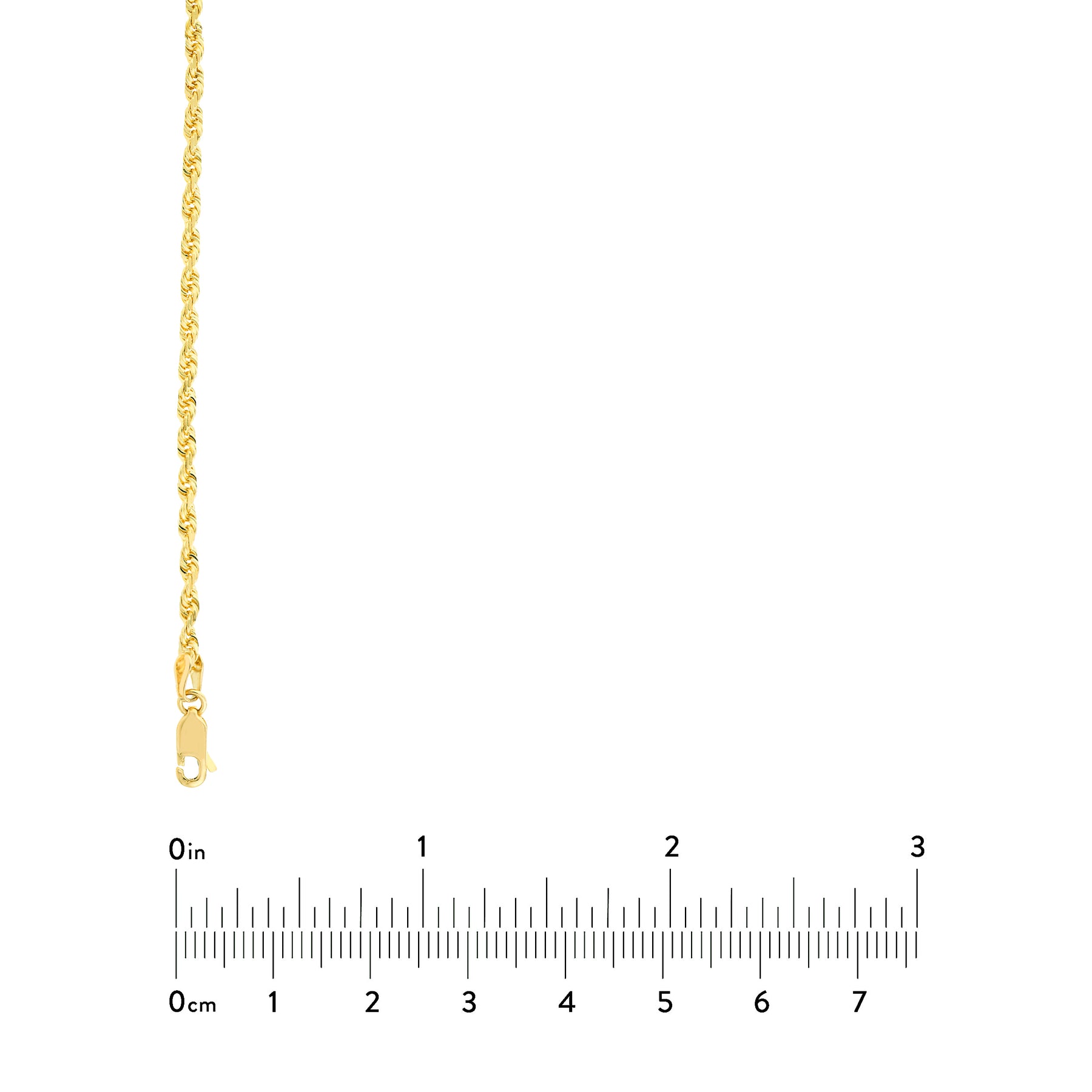 The fine quality of this chain is sure to impress. The Solid Diamond-Cut Rope Chain is made to shine. This chain measures 2.7mm wide.