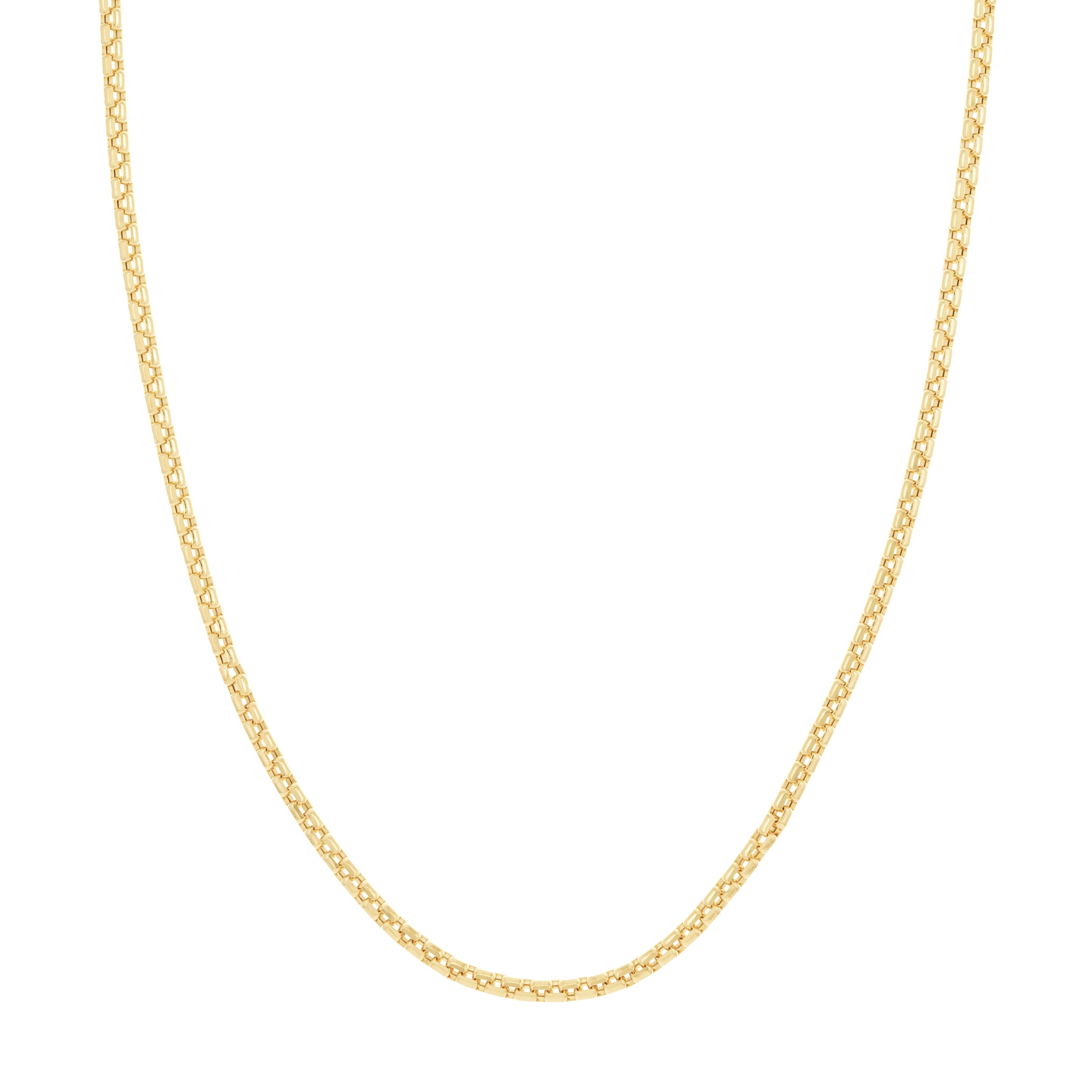 The Round Box Chain gives a softer feel to the standard Box Chain. Elegant and sweet, this 10K yellow gold diamond-cut chain mea
