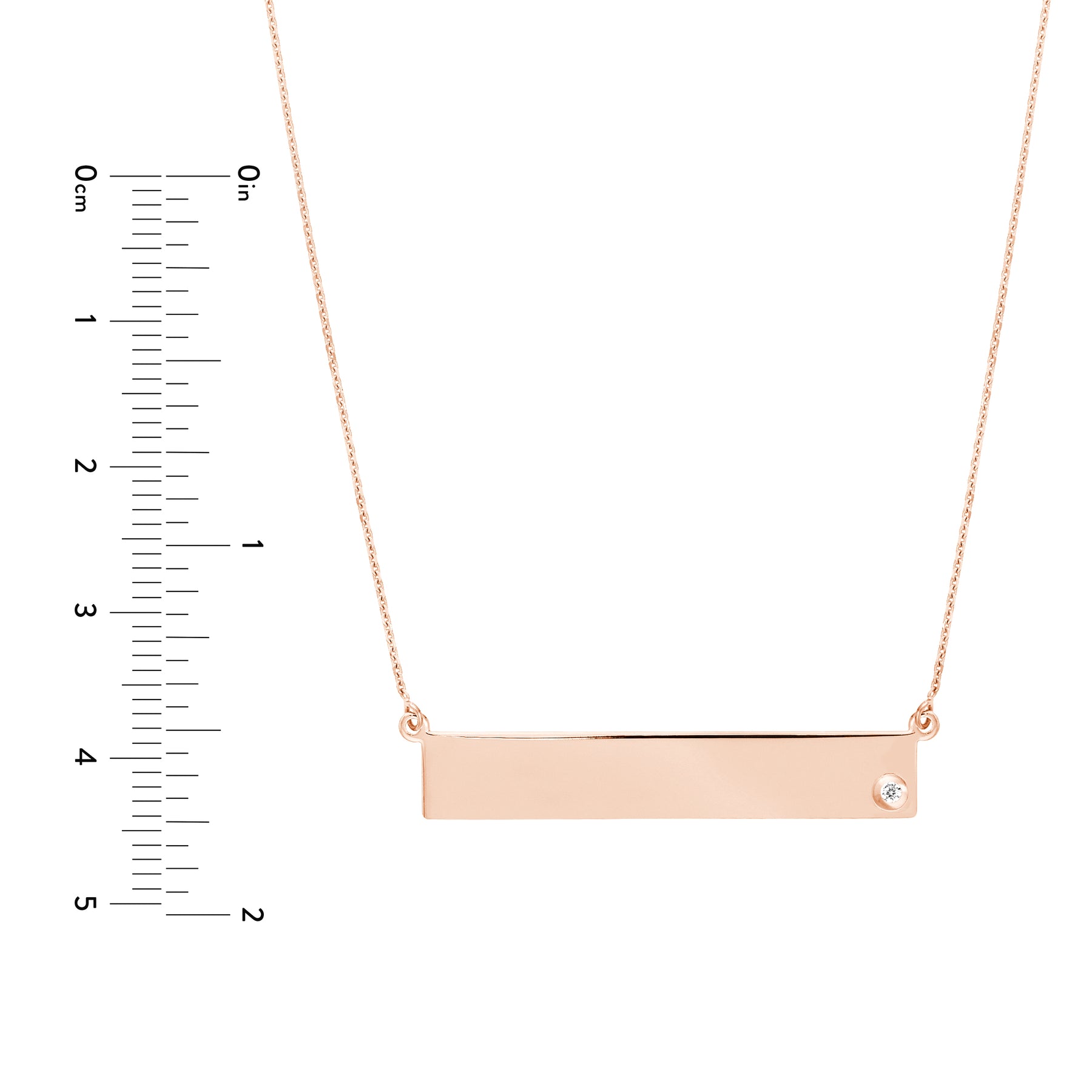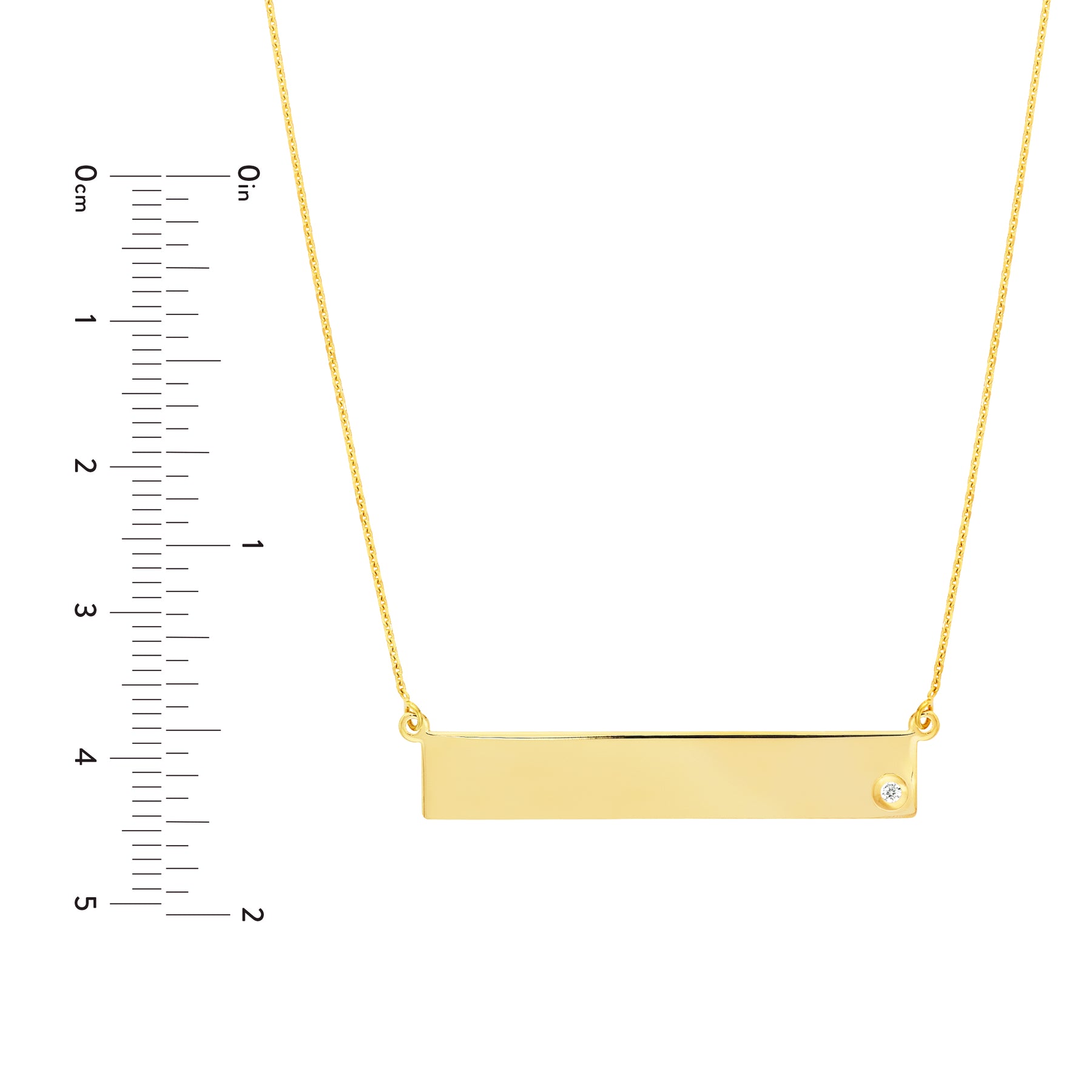 The classic bar necklace always looks chic. This wardrobe staple gets an extra touch of elegance with its 2pt diamond accent. Create your custom necklace by engraving your name.