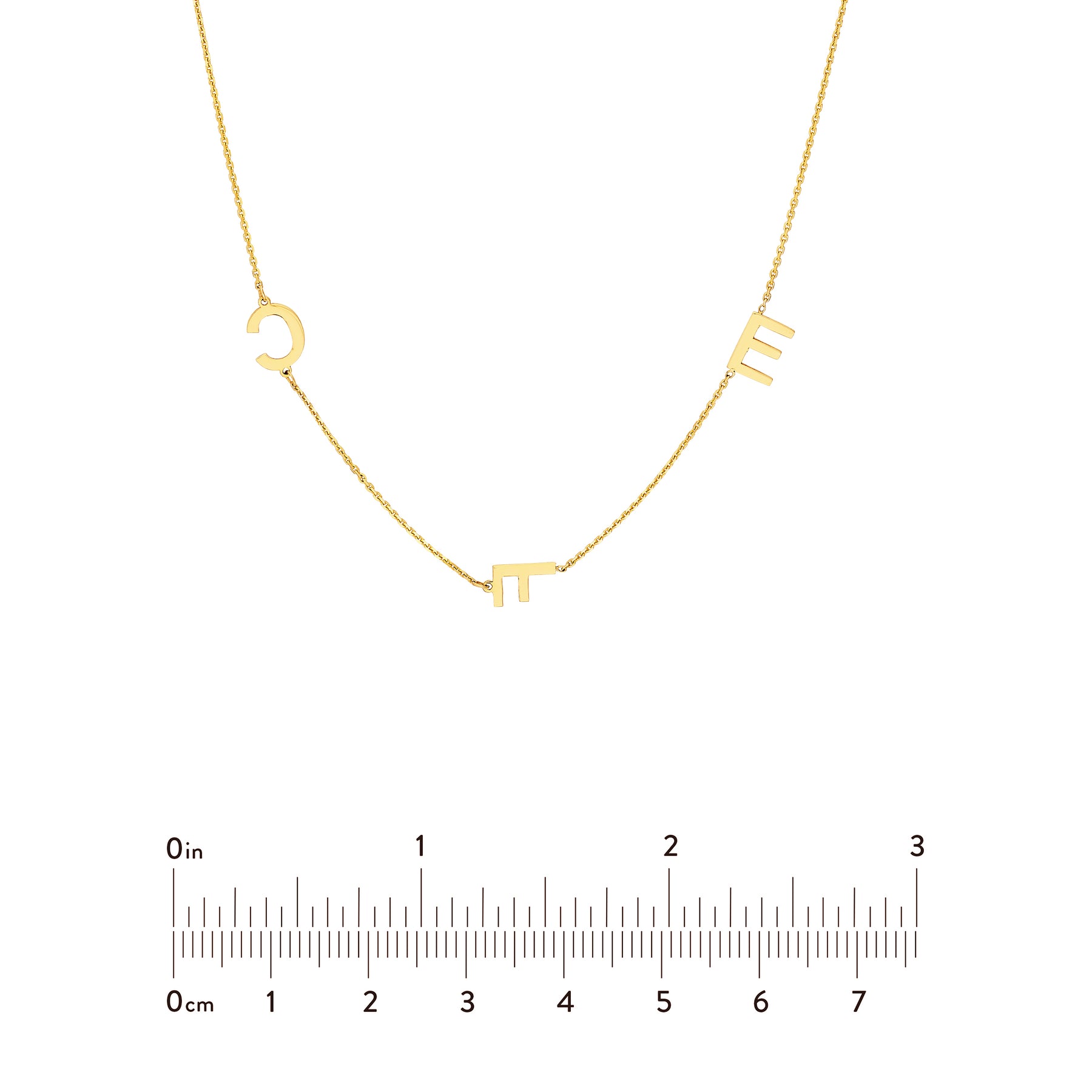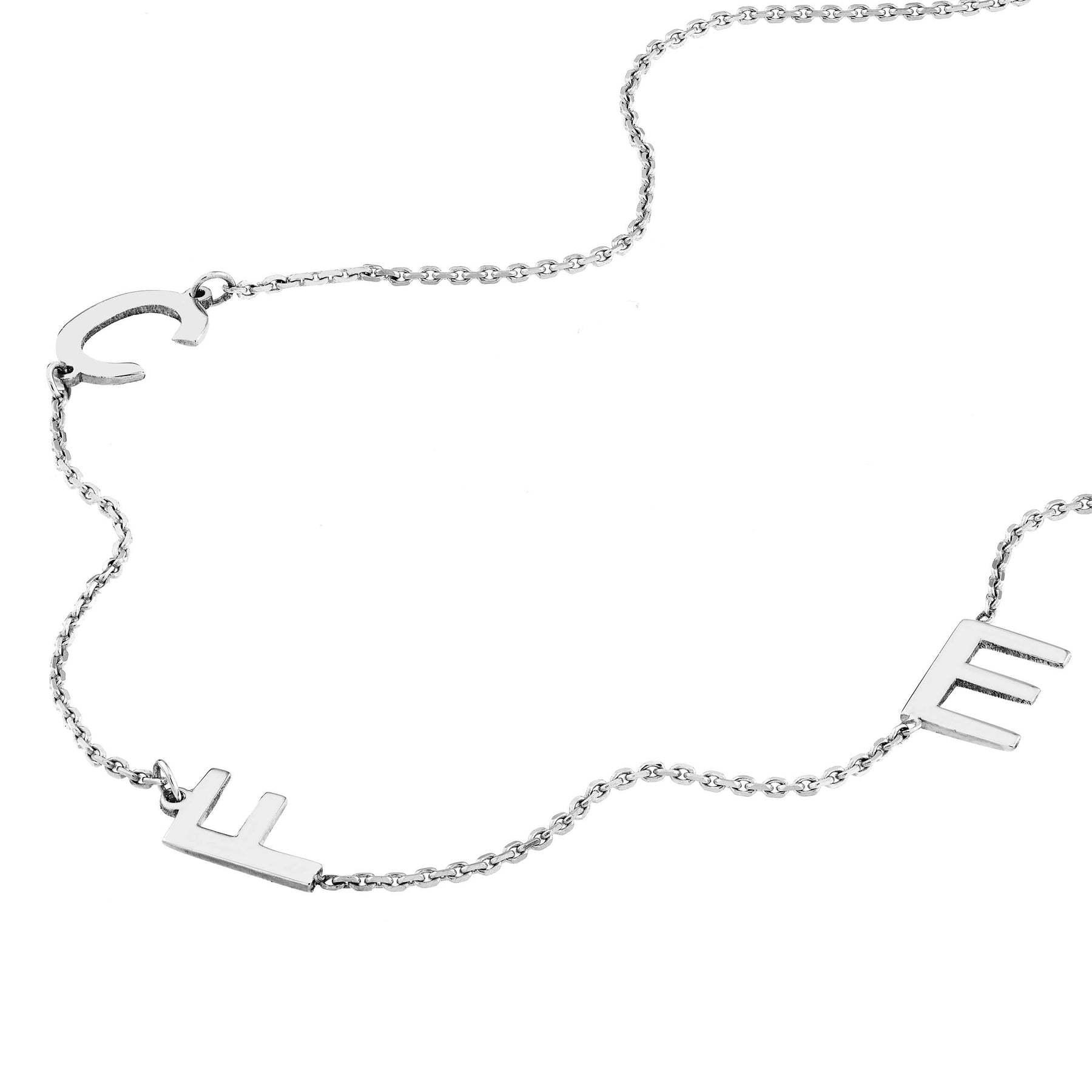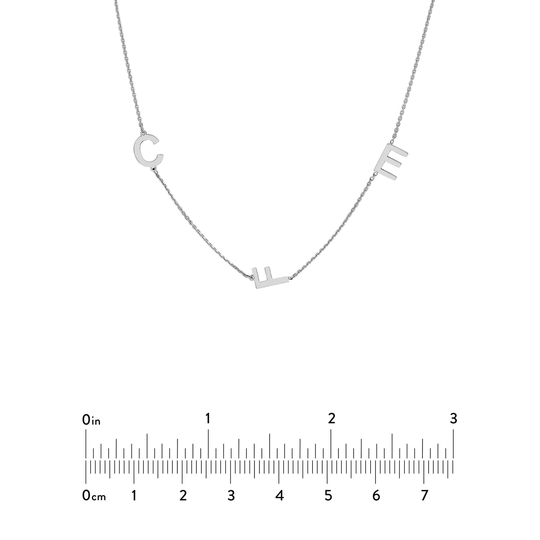 Design your own necklace with these structured block letters by choosing the initial placement with the attached chart. Letters are 7mm high.