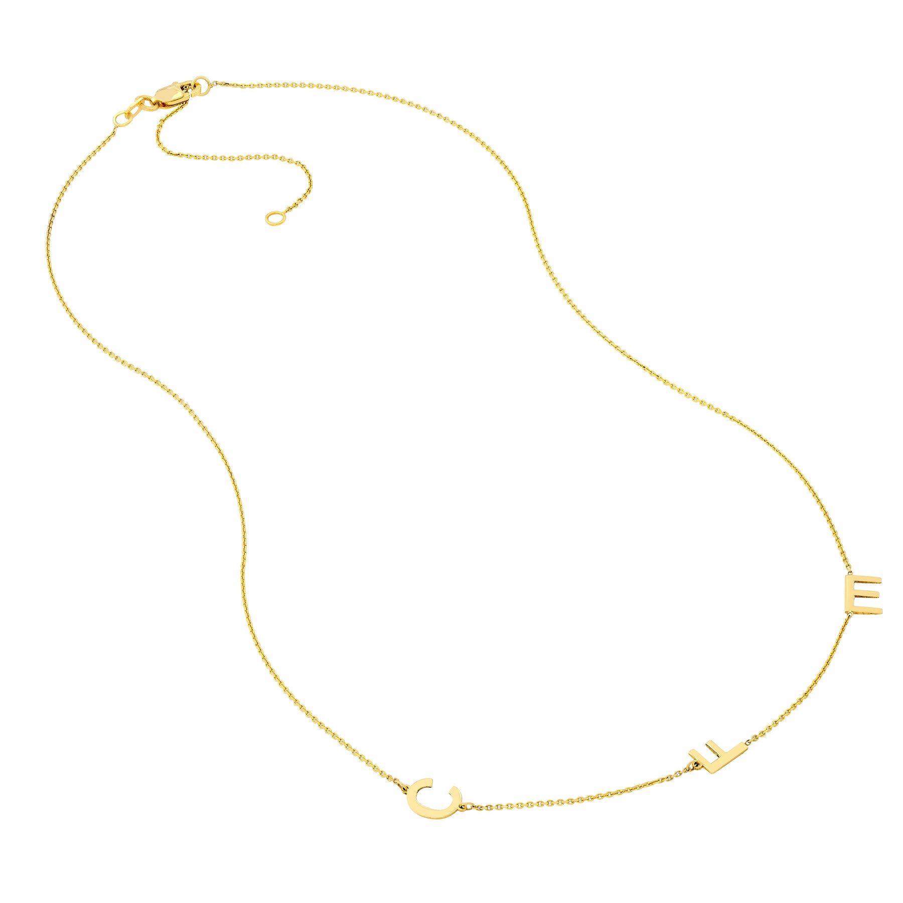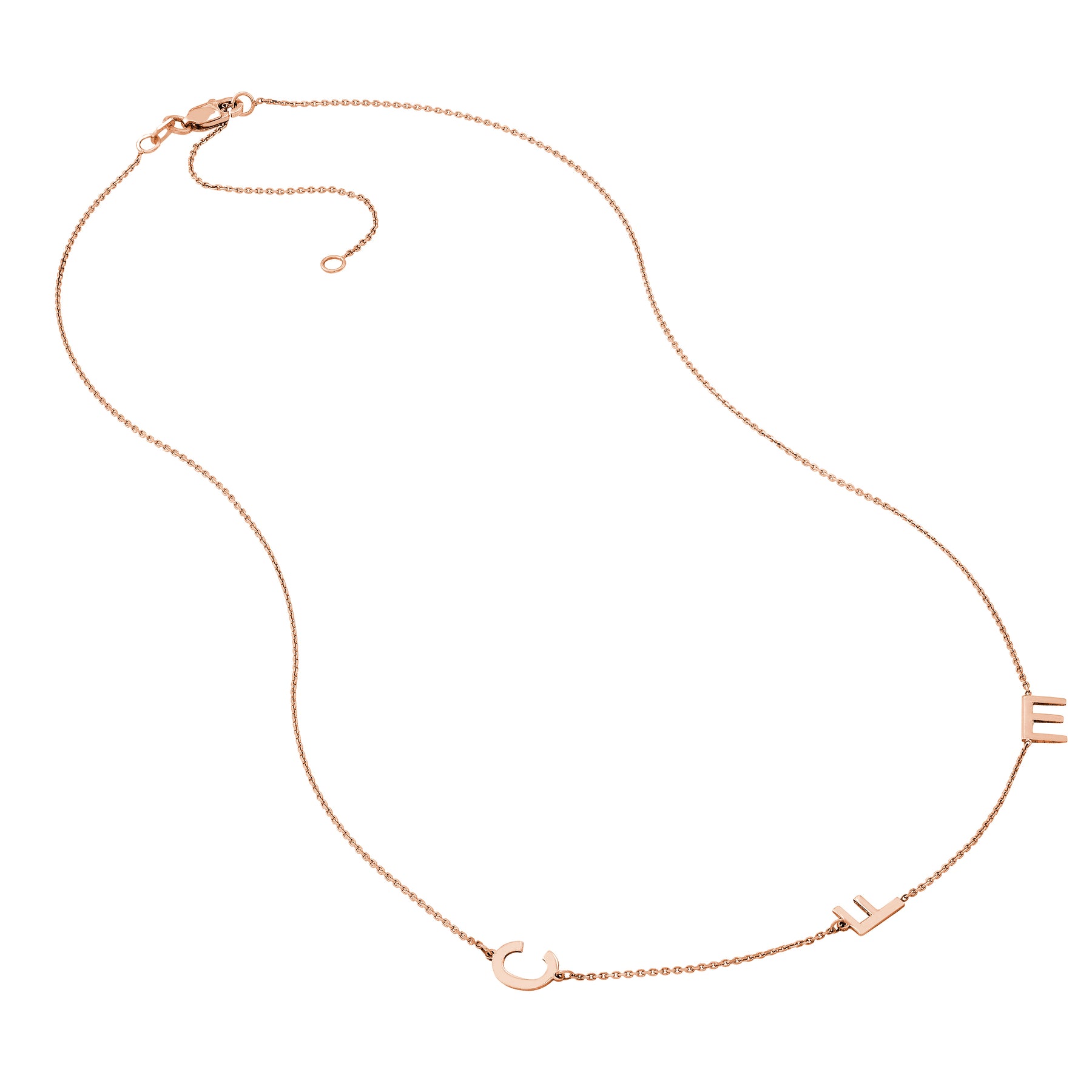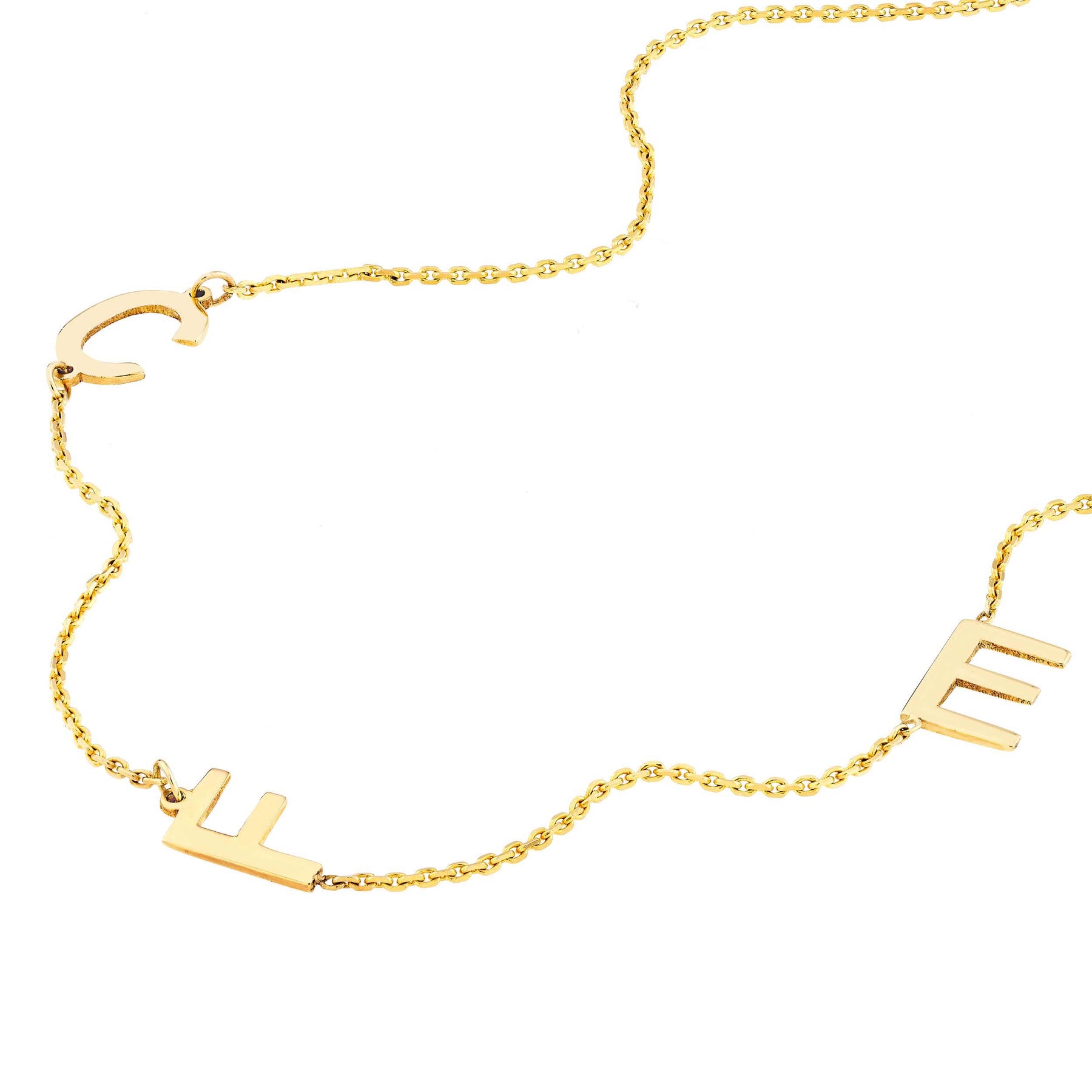 Design your own necklace with these structured block letters by choosing the initial placement with the attached chart. Letters are 7mm high.