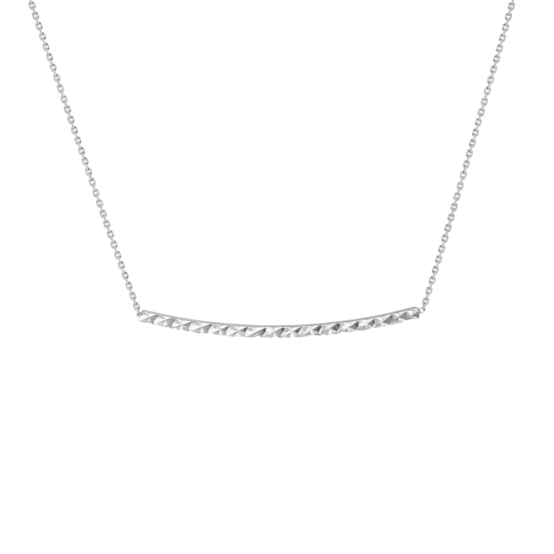Enjoy a modern spin on the classic bar necklace. This bar necklace curves slightly upward and features a diamond-cut finish.