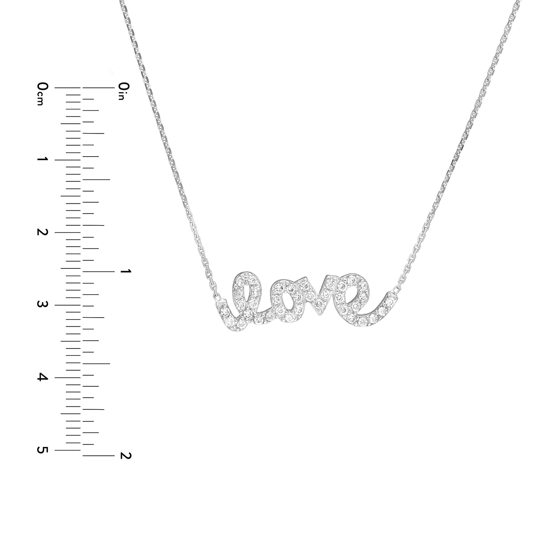 Hold love close to your heart with this script CZ love necklace. The darling piece is on an adjustable chain. Crafted in Sterling Silver. Plated in rhodium, yellow gold or rose gold.