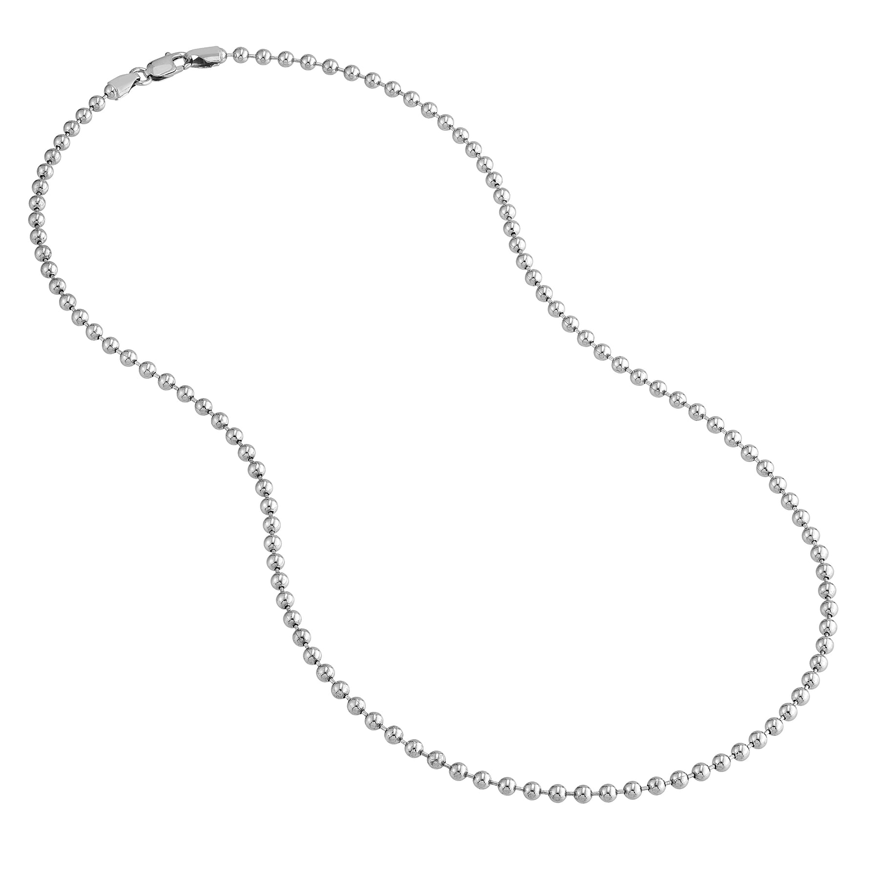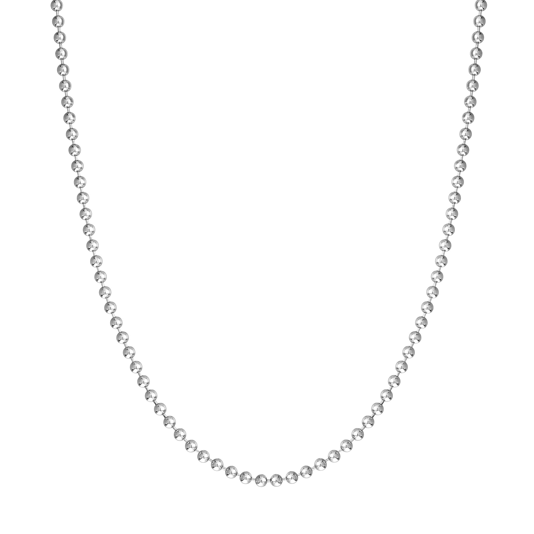 The Bead Chain is a timeless classic. Made of sterling silver, this chain will never go out of style. Measures 3mm and fastens with a lobster lock.